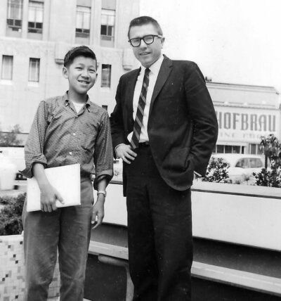 Gary Owens with a youthful, future music author, Ben Fong-Torres, in the 1960s.