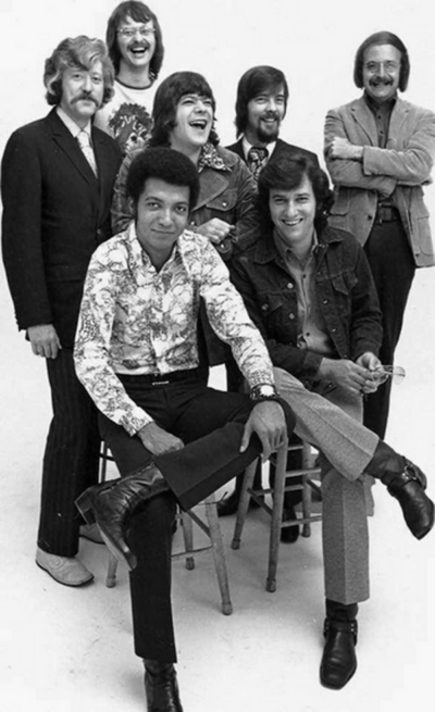 WLS 1972 Big 89 jocks: (F.) Bill Bailey, John Landecker, (B.) Bob Sirott, Chuck Knapp, Fred Winston, Charlie Van Dyke, J. J. Jeffrey.