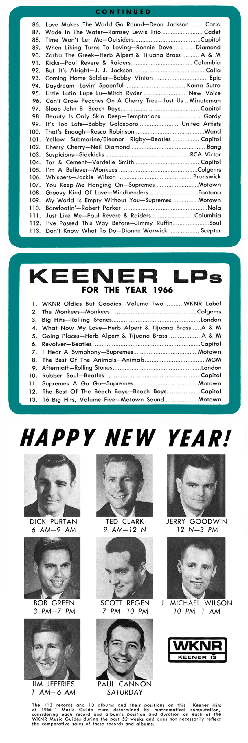 [A USARM Note: For the Billboard Top 100 Hits of 1966, according to the fabulous Chartcrush website, go HERE]