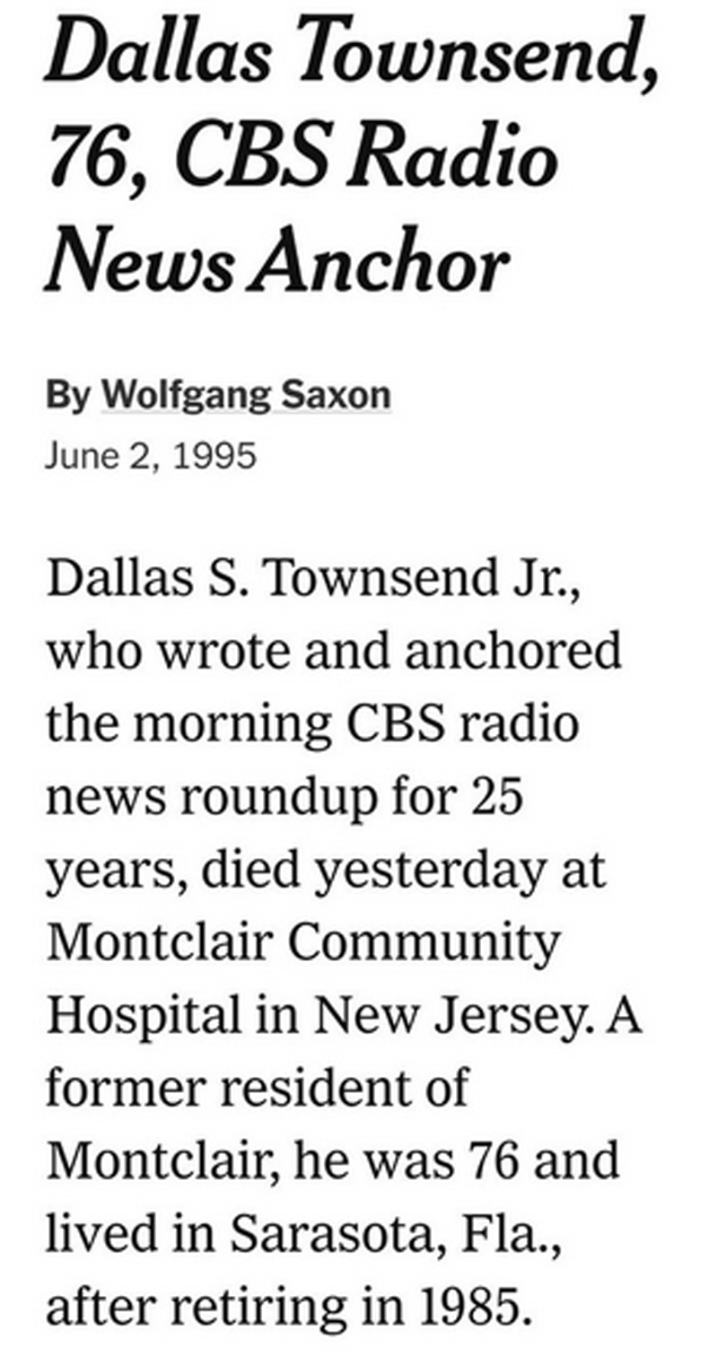 Dallas Townsend passed away on June 1, 1995. His death marked the loss of one of the last great anchors of radio’s golden era of journalism. Obituaries across the country remembered him as a “steady, authoritative voice” and “a model of broadcast integrity.” For CBS News, it was the passing of a colleague who had shaped the network’s identity. For listeners, it was the loss of a familiar companion who had guided them through decades of change. He was 76.