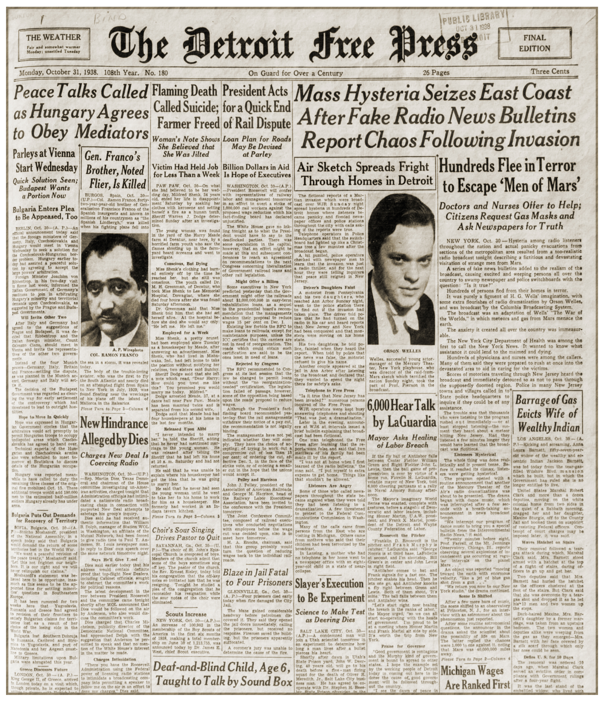 The Free Press received a flood of inquiries: “Is it true that New Jersey has been invaded?” WJR operators worked tirelessly to calm listeners, repeating, “That was just a dramatization.”