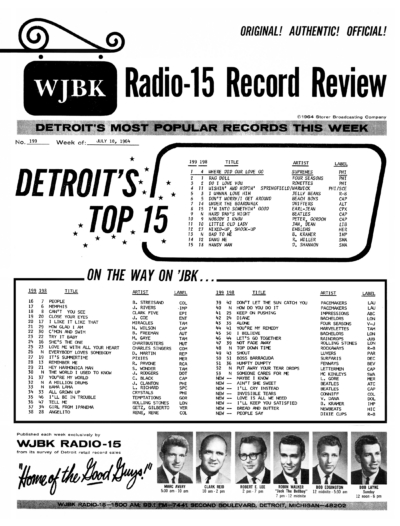 On July 14, 1964, WJBK released its final Record Review Survey.